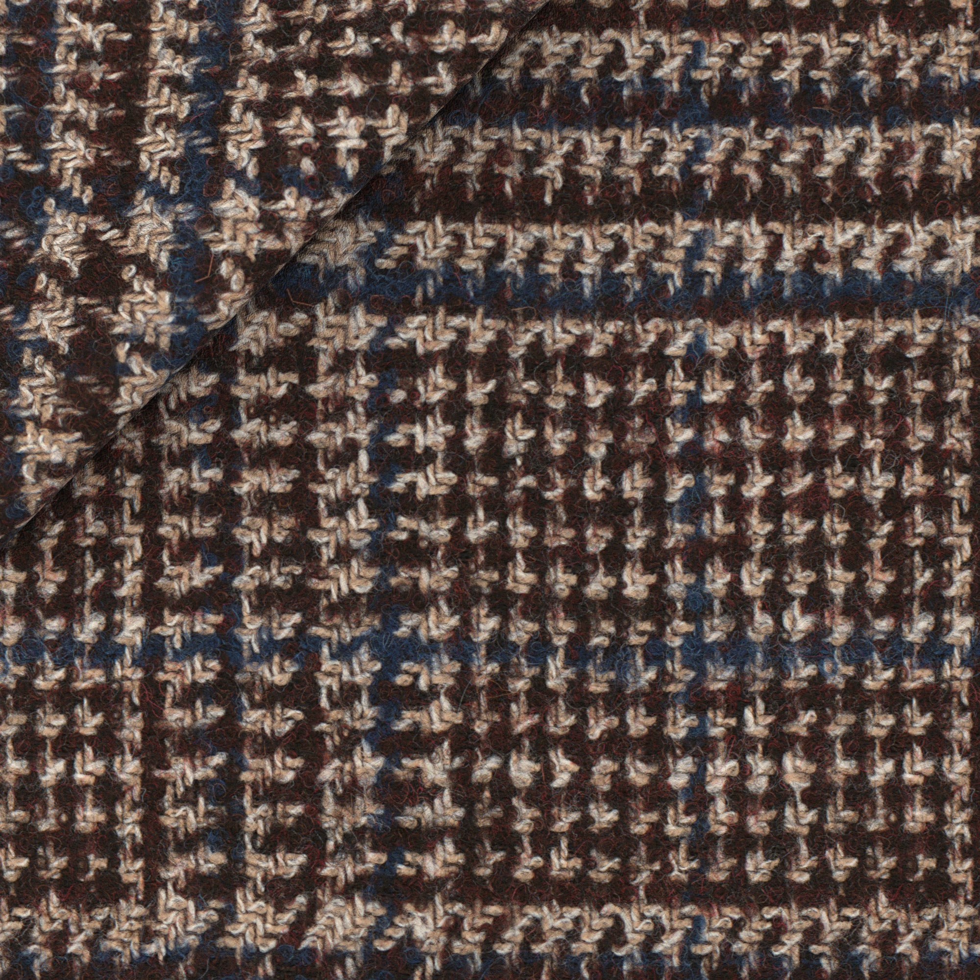 Chaqueta realizada A medida con un tejido de lana y baby alpaca de Ferla, una excelencia del Made in Italy. El tejido es suave, cálido y envolvente al tacto y se caracteriza por un estampado Príncipe de Galles marrón con toques beis y overcheck azul claro. Una prenda de estilo invernal, para llevar sobre un jersey para el tiempo libre.